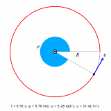 This simulation allows students to study how much time is needed to make a certain angle and what the angular speed is. Students have the ability to change the frequency or time it takes to complete one circle and the radius of the circle.